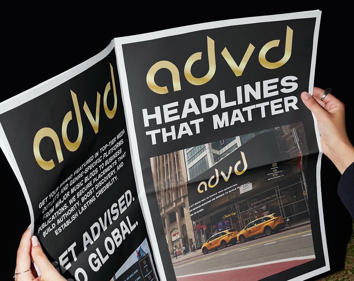 ADVD is a global marketing consultancy built for musicians, brands, and influencers. We deliver high-impact campaigns across press, social media, and outdoor advertising — helping you grow your presence with strategy, speed, and access.